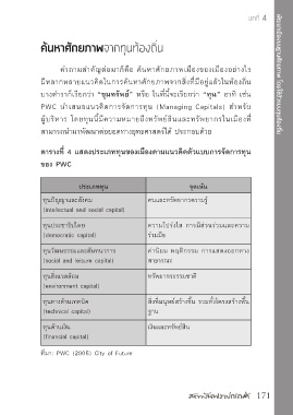 ตารางที่ 4 แสดงประเภททุนของเมืองตามแนวคิดตัวแบบการจัดการทุน